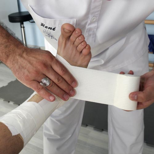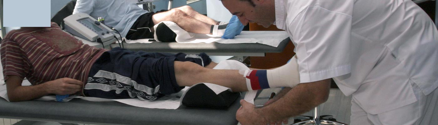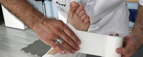 En Clínica René somos especialistas en la colocación de vendajes funcionales y kinesiotaping en las distintas articulaciones y partes del cuerpo (por ejemplo: esguinces de tobillo, y rodilla; tratamientos de luxaciones de hombro, rótula, dedos, epicondilitis,etc); de esta forma se puede evitar el uso de otro tipo de inmovilizaciones más rígidas que, a la larga, retrasan el tiempo de recuperación y suelen ser más incomodas para el paciente.